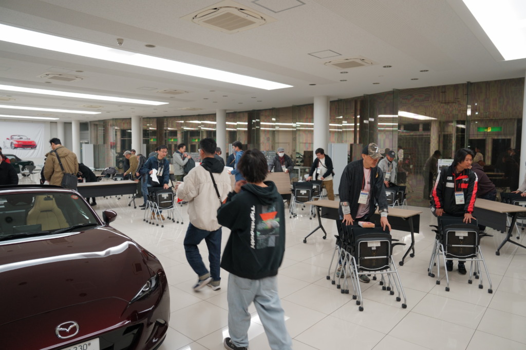 当初はロードスターに限らず、ライトウェイトオープンカーにのって気持ちよさを知ってもらおうとして始めたものですが、何度か開催しているうちに見えてきたニーズ、参加者の意見などから、今回はロードスター初心者とベテランのファンを繋ぐ出会いの場となっております。なお、参加費は500円のイベント保険代と運用費、それに崎陽軒のお弁当代の実費を初心者、ベテランとも同額支払います。場所はマツダ横浜R&Dセンター、通称MRYをマツダのご厚意で貸してくれているとのことです。