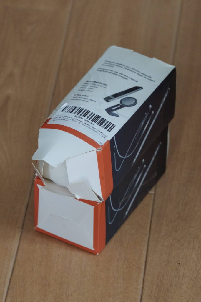 くしゃくしゃの米国アマゾン特製紙袋に入っていた、やや潰れかけて開いたあとがあるような箱を開けると、中身はしっかり注文の充電器スタンドで安心しました。