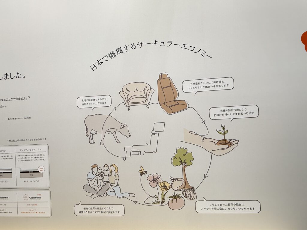 さて、人とくるまのテクノロジー展2025で、そんな疑問を解決してくれるブースに出会いました。CircuLeather(サーキュレザー)を展開するミドリオートレザー株式会社です。そちらでは、食用の肉としていただいちゃった牛さんの皮を革製品として利用している会社のようです。