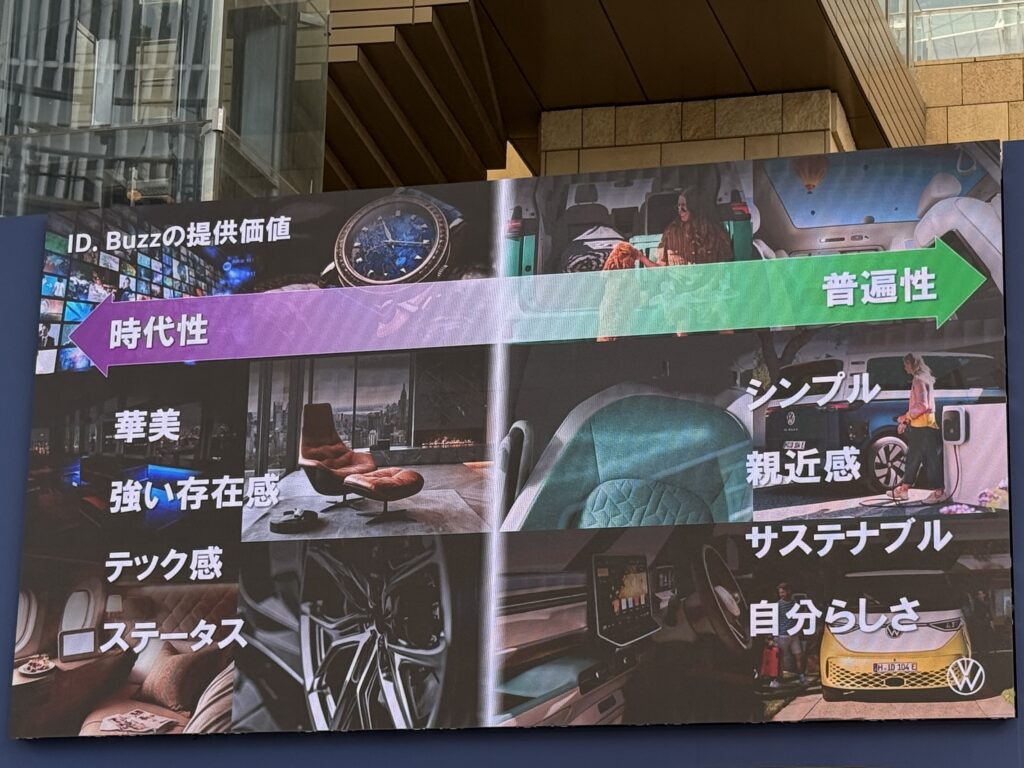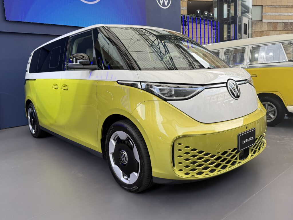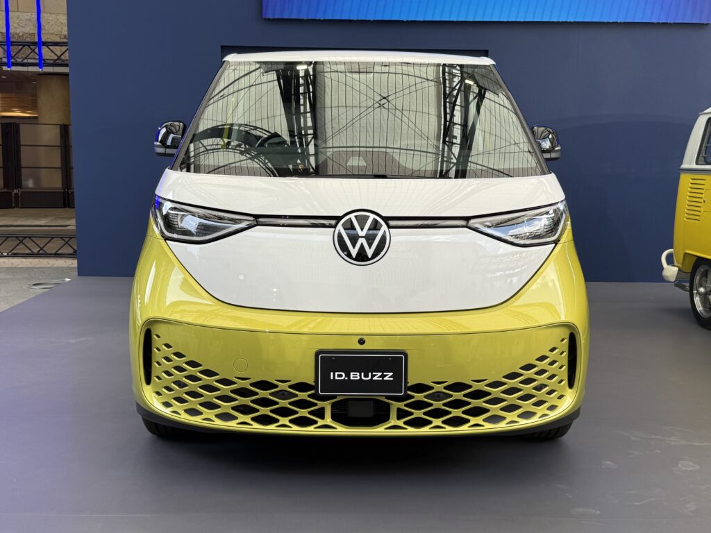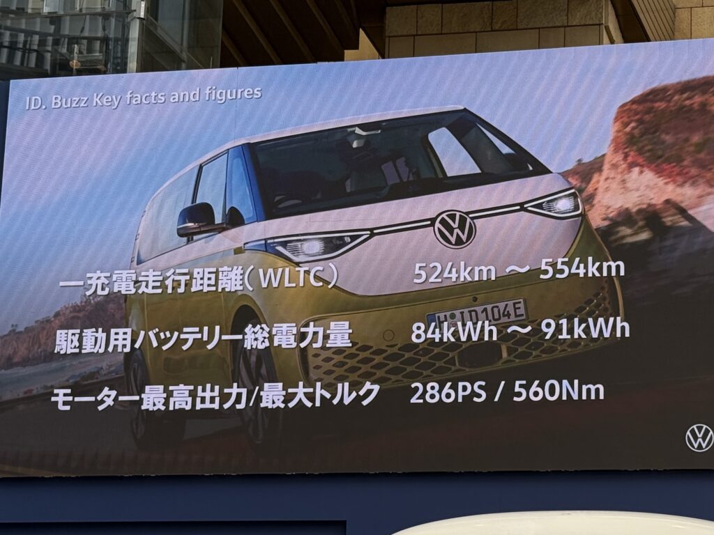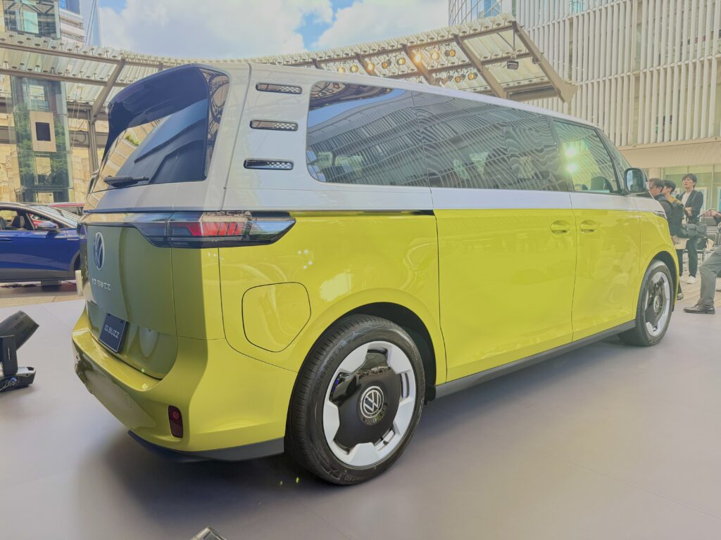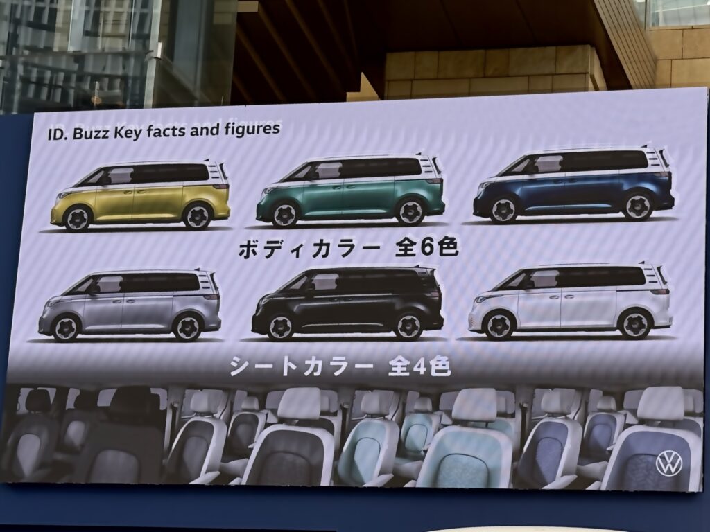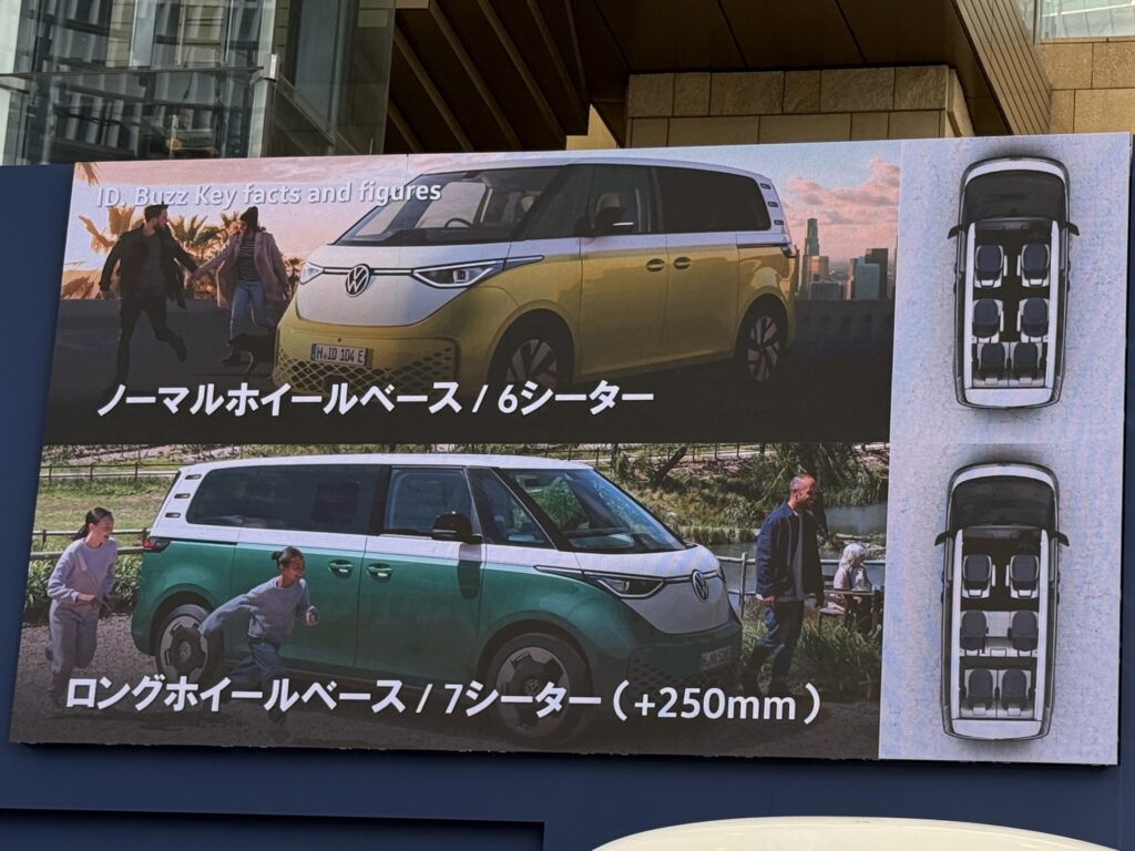 そうして、ID.Buzzは2022年に欧州で発表・発売、北米でも販売され、この度、ついに日本での発売となったのです。ちなみに、北米で販売される際、3列目シートの幅が、本来の2名掛けとするには幅が広すぎて3名掛け登録となる、しかしそのためにはシートベルトをもう1名分必要、などといったすったもんだがあって手間取ったという逸話があったようですが、日本への導入は、欧州、北米の次のマーケット郡の中にあり、国内充電インフラへの対応などを行い、時間を要したとのこと。