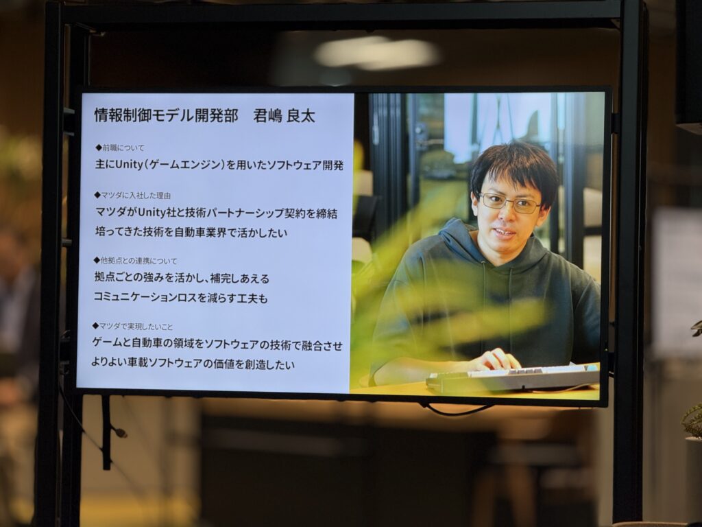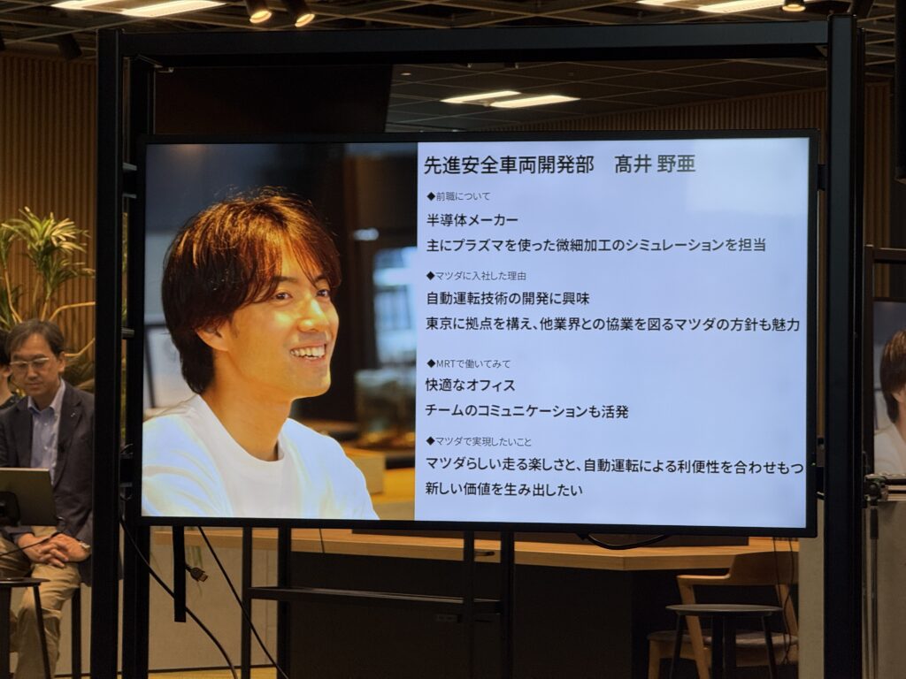 お披露目会では、実際にキャリア入社で半導体業界、ゲーム業界からマツダに転職したお二人がスピーチしてました。