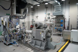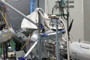 それ以外では、万が一水素が漏れた場合の排気装置があるくらいで、ガソリンエンジンのそれとほぼ変わりませんが、油臭いエンジンテストベンチという印象よりも、クリーンルームくらいの清潔さと、やはりガソリン臭がしないことが印象的でした。