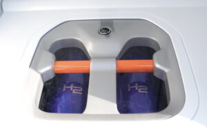 水素を燃料にして走らせることは、ランドカー同様に既存エンジンを使用し、ガソリンタンクを水素タンクに替え、その他の燃料系統をわずかに変更することで、水素燃料車とすることが可能です。