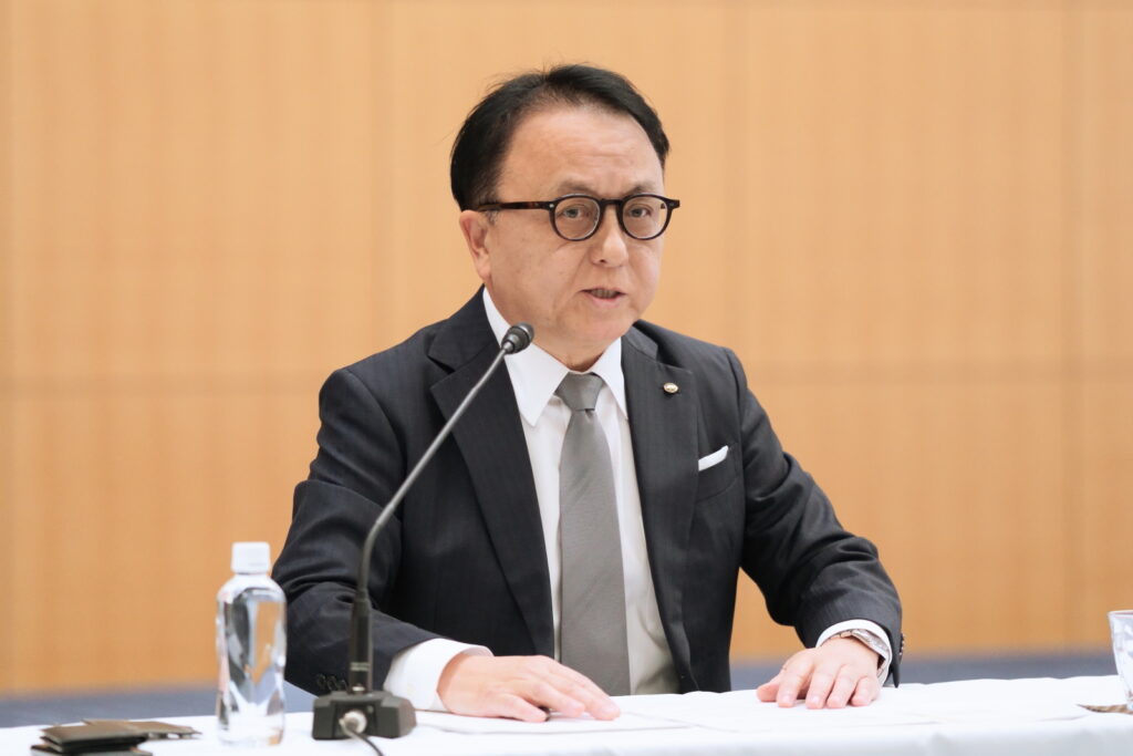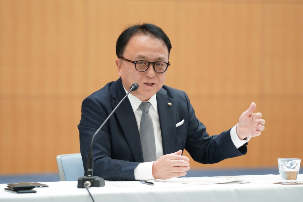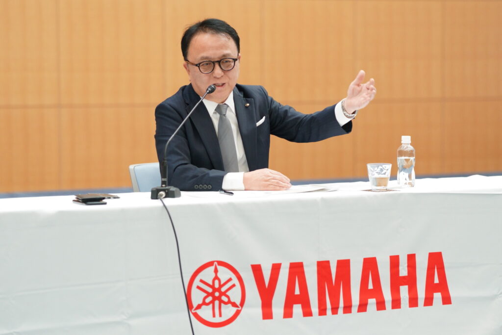 水素の実力を体感した後、設楽元文社長によるラウンドテーブルが行われました。設楽社長は、本社社屋のロゴをLED化したことに触れ、「東海道新幹線の車窓から見える“YAMAHA”の光をぜひ確認してほしい」と地域への愛着を語った後、まずは経営数字の発表と説明。その後、ヤマハの進むべき道「マルチパスウェイ(多角的経路)戦略」について明言しました。