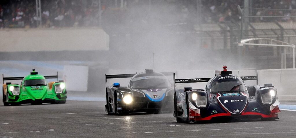 レースはスタート時刻あたりから路面コンディションが悪化し、一部濡れてはいるものの、乾きそうな天候でした。各チームはタイヤ選定に頭を悩ませます。結局LMP2クラスは2台がウェットで残り全車がスリック、LMP2-PRO/AMクラスは上位3台がスリックタイヤを装着しましたが、4番手のマシンと21号車はウェットタイヤを選びました。