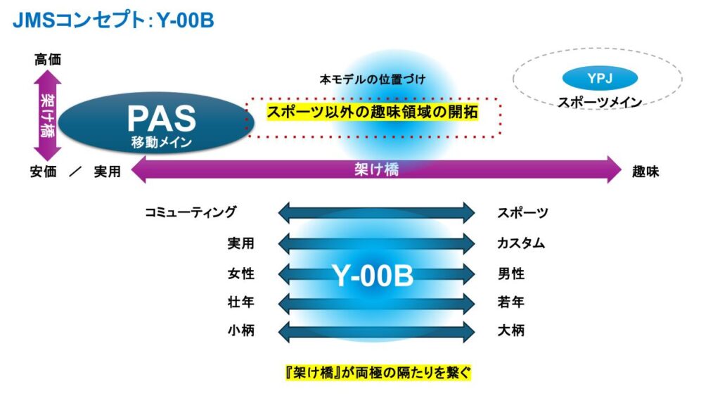 電動アシスト自転車の実用部分の裾野をPASで広げていきながら、本気で遊ぶことが大好きなヤマハは、オフロードからマウンテンまで幅広く遊べるYPJシリーズをリリースするなど、違った方向へも拡大していく。そうして30年以上が経過した現在、同社はその市場に新たな課題を見据えている。実用のPASシリーズと、スポーツのYPJシリーズとの間に、大きな谷が存在していたのだ。