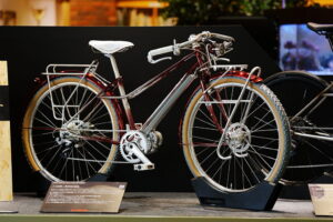 最小限のバッテリーを搭載した軽快な外観のデュアルツインフレームで動感を表現。その繊細で流麗な鉄フレームの構造と、メカニカルで力強い電動システムという背反する要素の共存を対置。ドライブユニットのヒートシンクをあえて露出させ、往年の空冷エンジンのような佇まいを演出し情感に訴える。トラス構造のトップチューブや巻き付け構造のシートバインダーは機能美に溢れ、ミニマルなバッテリーインジケーターやスイッチボックスなどHMI(ヒューマンマシンインターフェース)は品格ある佇まいとした。