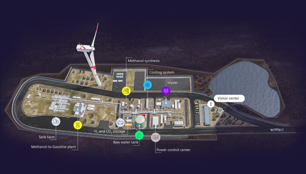 このメタノールを介した液体炭化水素燃料の製造に取り組んでいる企業のひとつが「HIFグローバル」社。元はチリに設立されたベンチャーで、南米大陸の南の端、強風で知られるマゼラン海峡にも近いハルオニの原野に風力発電施設を作り、その電力を使ってメタノール・プロセスでガソリンと軽油(と、もちろんメタノールも)の製造を計画しました。